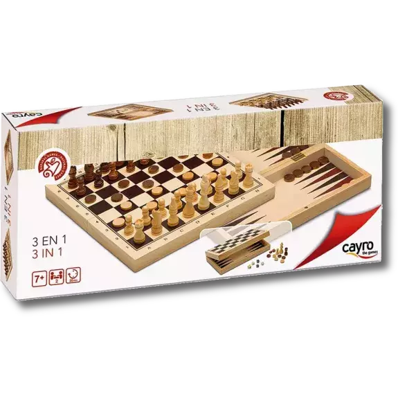 Coffret 3 En 1 : Échecs, Dames Et Backgammon Pliable