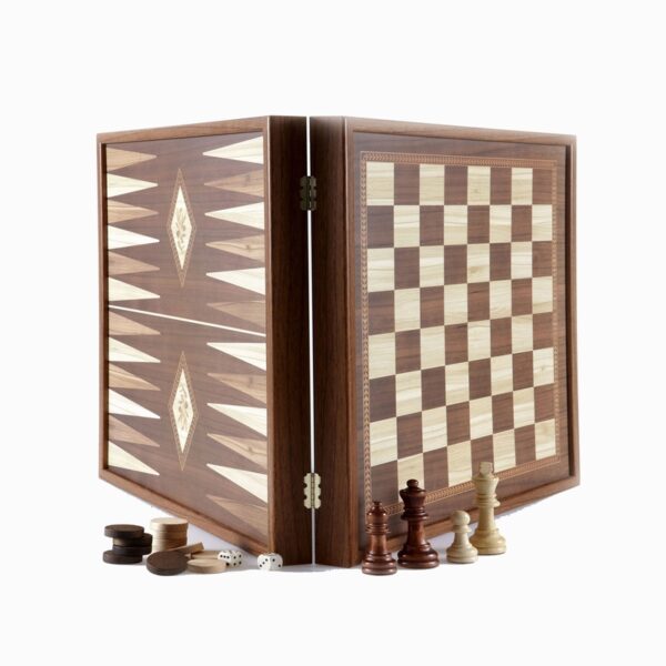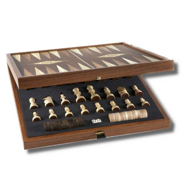 Set Échecs et Backgammon Artisanal – Noyer (41cm)